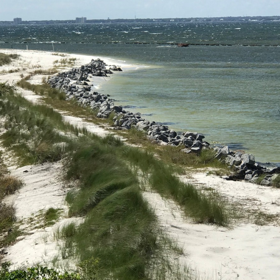 Santa Rosa Dunes Living Shoreline Shoreline Stabilization ProjectA Florida living shorelines project in Santa Rosa Sound between Gulf Breeze and Pensacola Beach implemented by Heather Reed of Ecological Consulting Services. the project was designed to protect the homeowners' property from destructive wave action caused by an adjacent seawall..